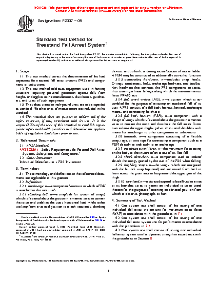 1.1 This test method covers the determination of the load capacities for treestand fall arrest systems (FAS) and components or subsystems.