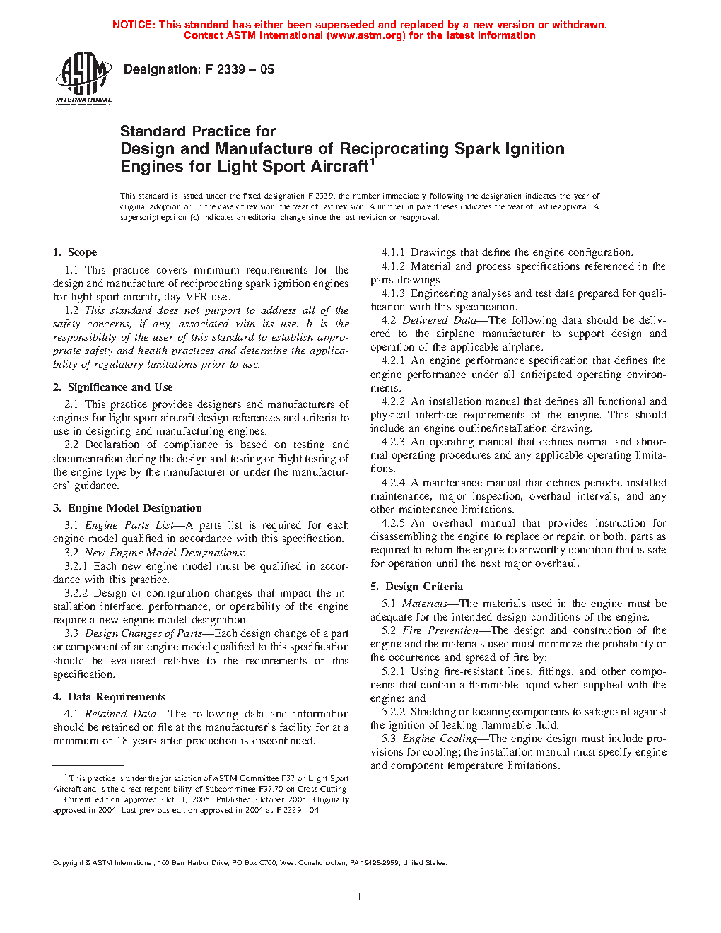 3.1 This practice provides designers and manufacturers of engines for light sport aircraft design references and criteria to use in designing and manufacturing engines.