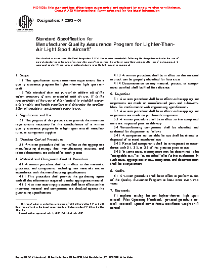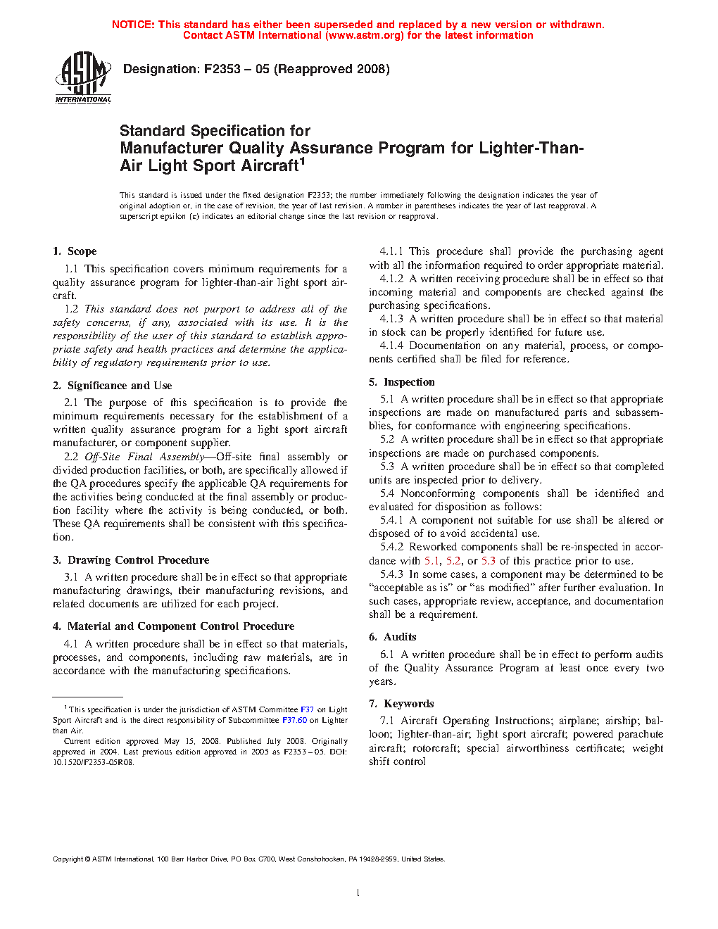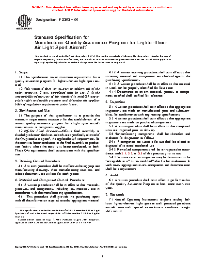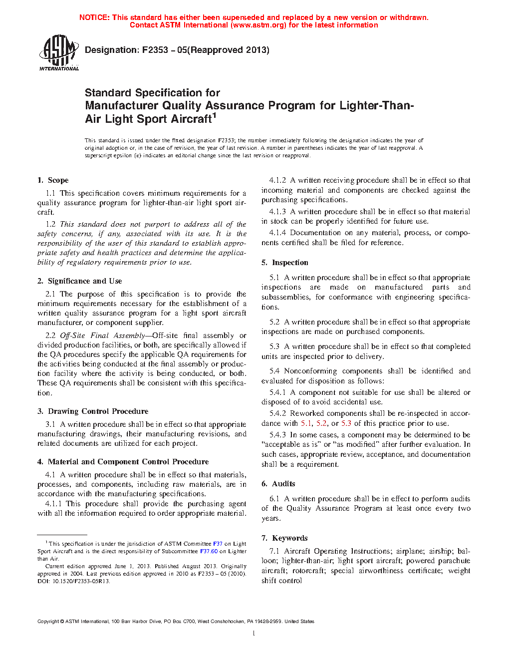 1.1 This specification covers minimum requirements for a quality assurance program for lighter-than-air light sport aircraft.