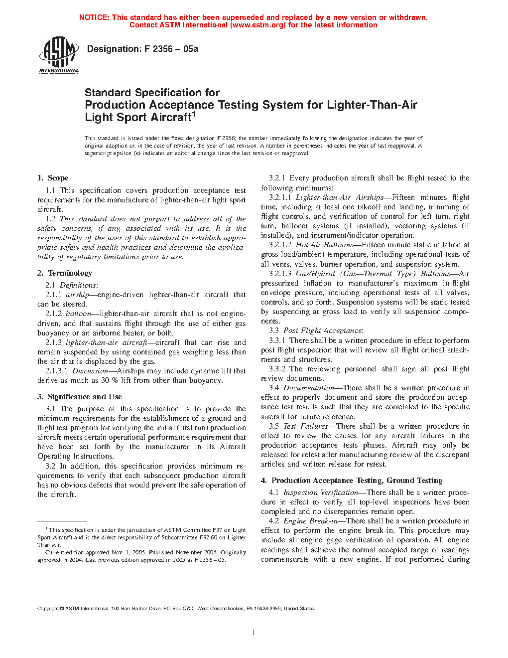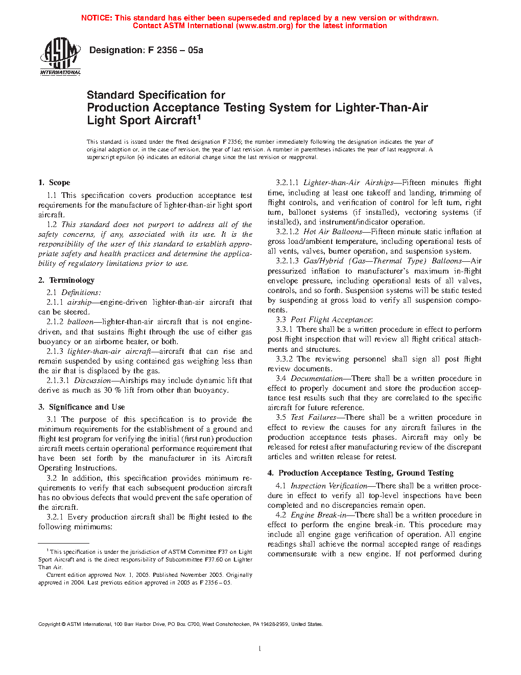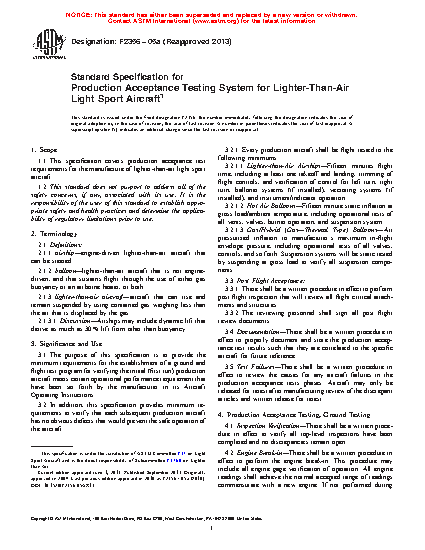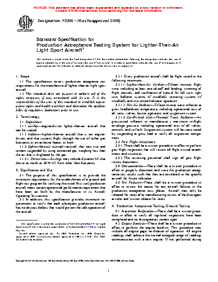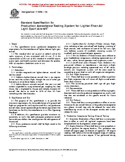 1.1 This specification covers production acceptance test requirements for the manufacture of lighter-than-air light sport aircraft.
