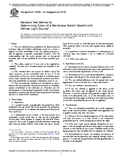 1.1 This test method covers procedures for determining the luminous color of a backlit membrane switch. As written, it applies to a fully assembled switch. For specific purposes, it can be applied to partially assembled switches, with the understanding that the results pertain only to the partial assembly and will be modified as the further assembly proceeds.