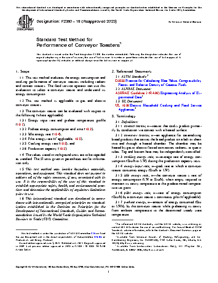 1.1 This test method evaluates the energy consumption and cooking performance of conveyor toasters. The food service operator can use this evaluation to select a conveyor toaster and understand its energy consumption.
