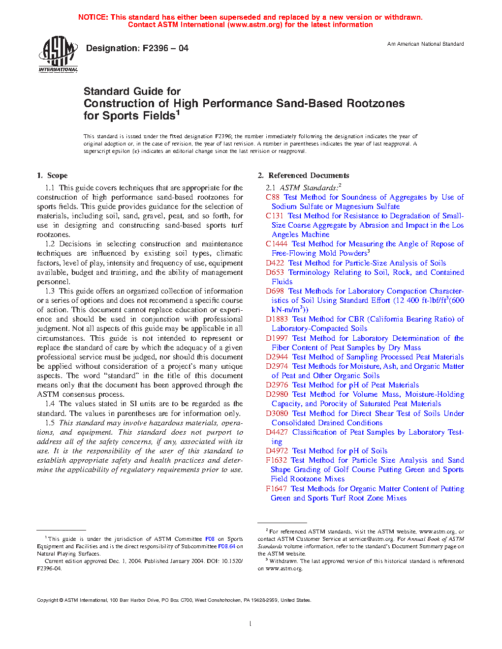 Note 2: Other specifications on soils for athletic field construction have been published and have been considered during the development of this guide.