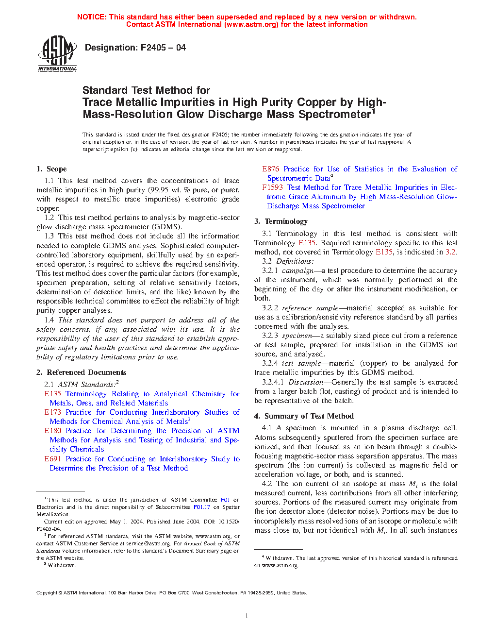 1.3 This test method does not include all the information needed to complete GDMS analyses. Sophisticated computer-controlled laboratory equipment, skillfully used by an experienced operator, is required to achieve the required sensitivity. This test method does cover the particular factors (for example, specimen preparation, setting of relative sensitivity factors, determination of detection limits, and the like) known by the responsible technical committee to effect the reliability of high purity copper analyses.