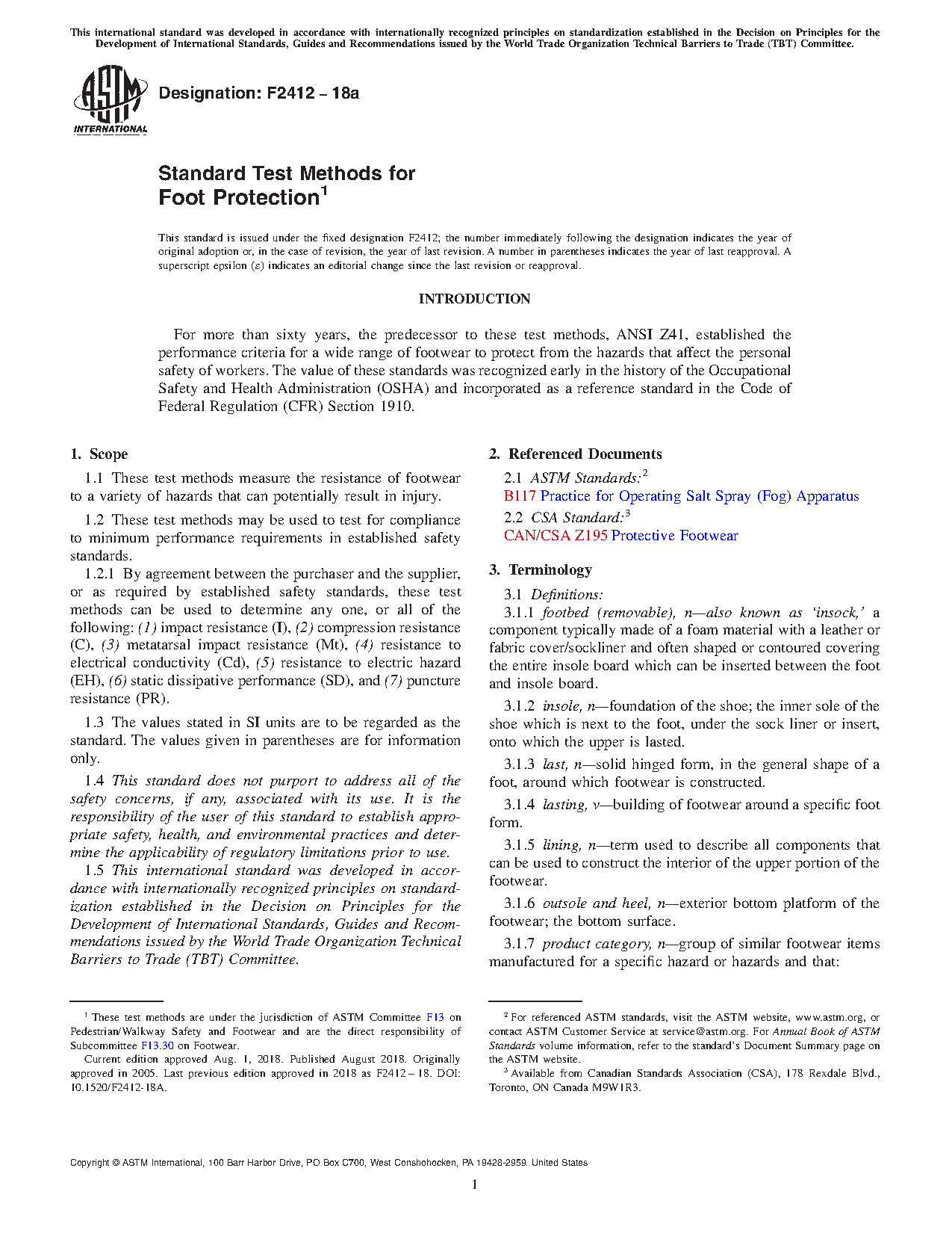 These test methods contain requirements to evaluate the performance of footwear for the following: