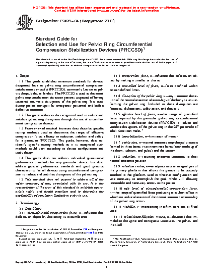 1.2 This guide addresses the recognized need to reduce and stabilize pelvic ring disruptions through the use of circumferential compression devices.