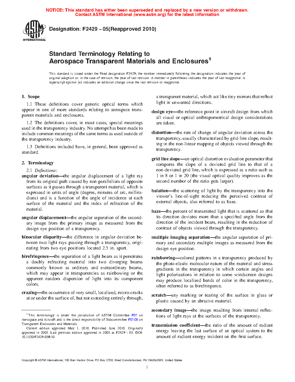 1.1 These definitions cover generic optical terms which appear in one of more standards relating to aerospace transparent materials and enclosures.