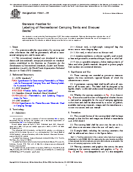 1.1 This practice establishes requirements for warnings and other information that shall be permanently affixed to recreational camping tents and bivouac sacks.