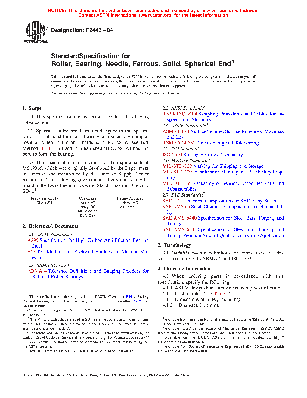 1.4 This specification contains many of the requirements of MS19065, which was originally developed by the Department of Defense and maintained by the Defense Supply Center Richmond. The following government activity codes may be found in the Department of Defense, Standardization Directory SD-1.2
