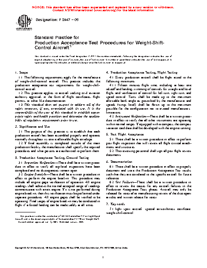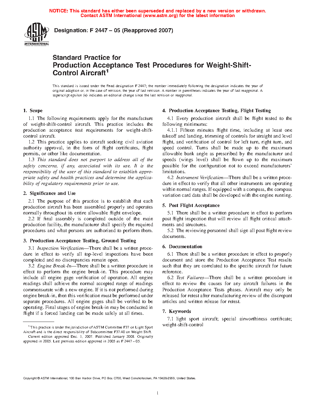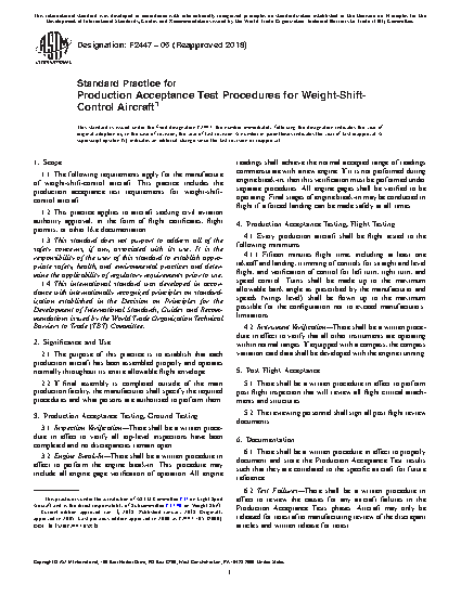 1.1 The following requirements apply for the manufacture of weight-shift-control aircraft. This practice includes the production acceptance test requirements for weight-shift-control aircraft.