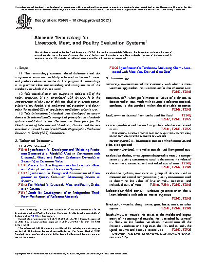 1.1 This terminology contains related definitions and descriptions of terms used or likely to be used in livestock, meat, and poultry evaluation standards. The purpose of terminology is to promote clear understanding and interpretation of the standards in which they are used.