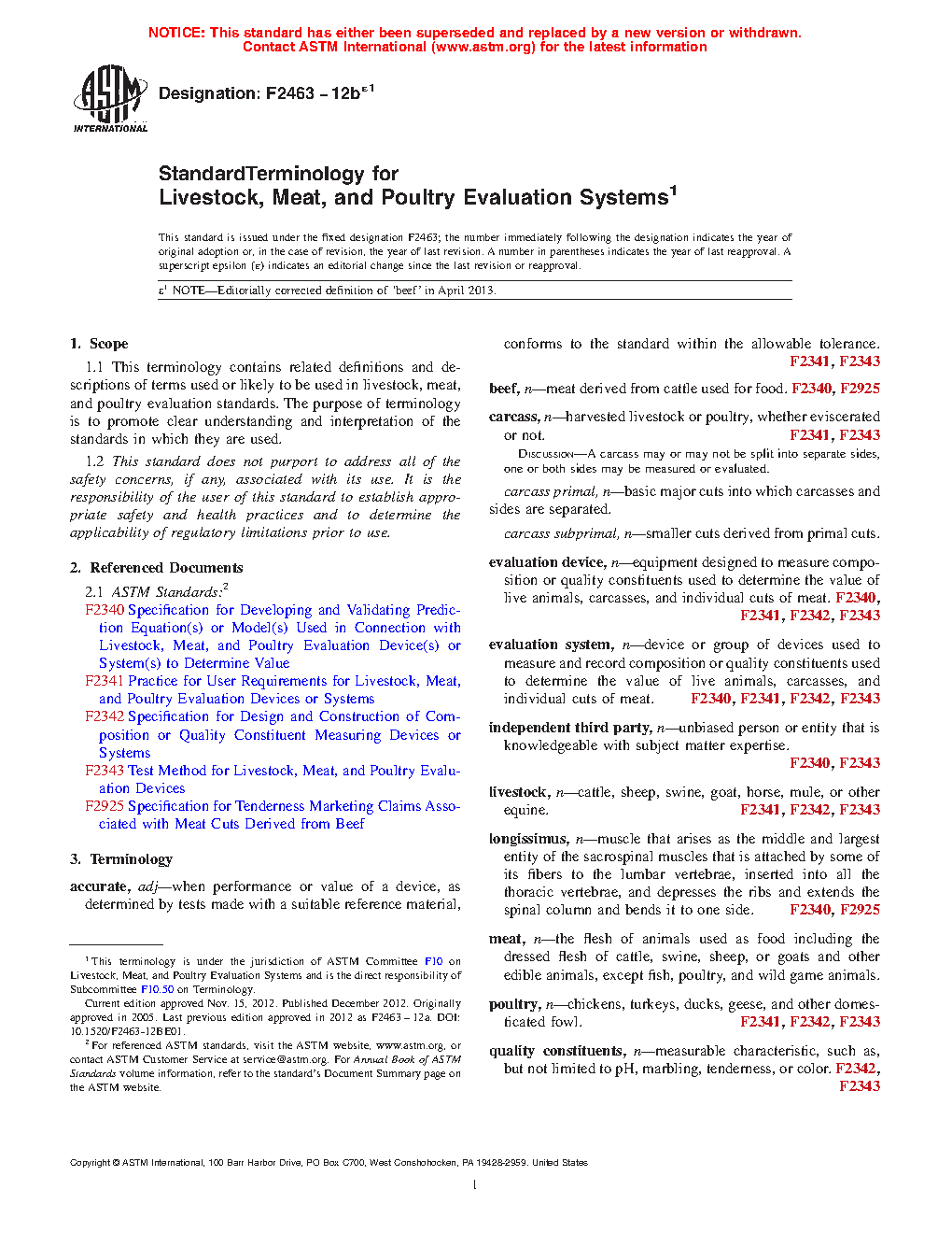 Standard Terminology for Livestock, Meat, and Poultry Evaluation Systems