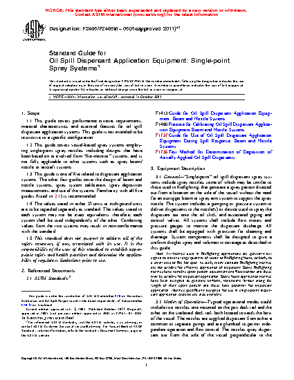 1.3 This guide is one of five related to dispersant application systems. The other four guides cover the design of boom and nozzle systems, spray system calibration, spray deposition measurements, and use of the systems. Familiarity with all five guides (listed in 2.1) is recommended.