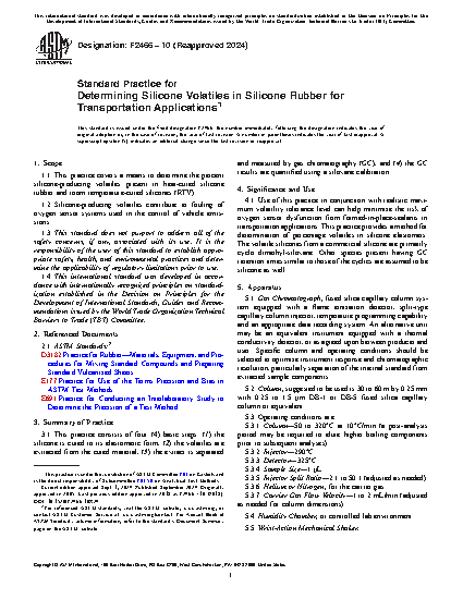 Standard Practice for Determining Silicone Volatiles in Silicone Rubber for Transportation Applications