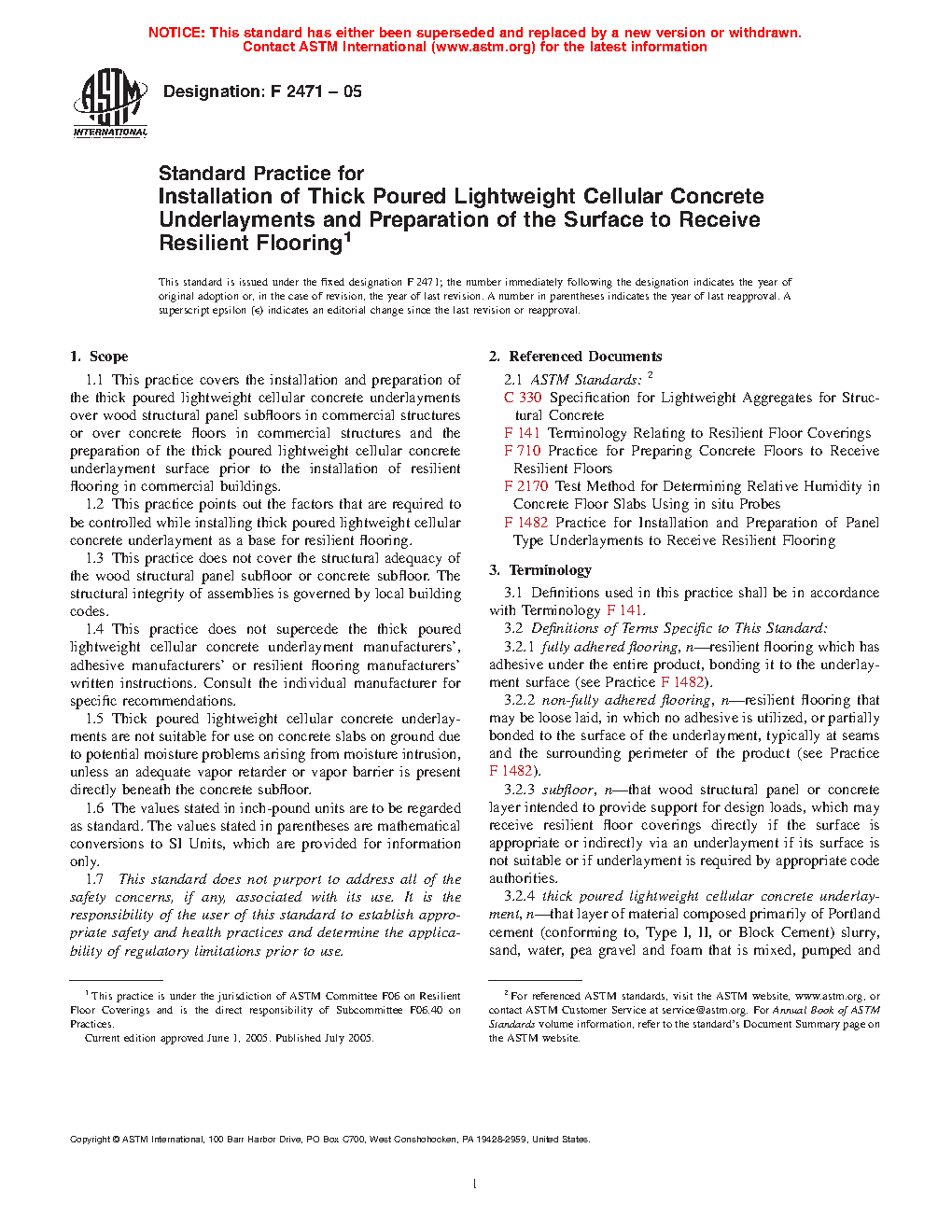 1.4 This practice does not supercede the thick poured lightweight cellular concrete underlayment manufacturers', adhesive manufacturers' or resilient flooring manufacturers' written instructions. Consult the individual manufacturer for specific recommendations.