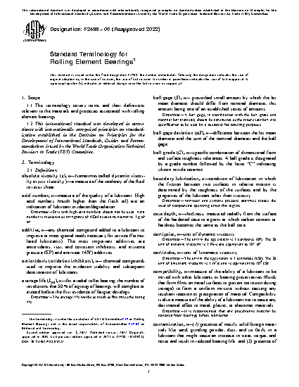 1.1 This terminology covers terms and their definitions relevant to the materials and processes associated with rolling element bearings.