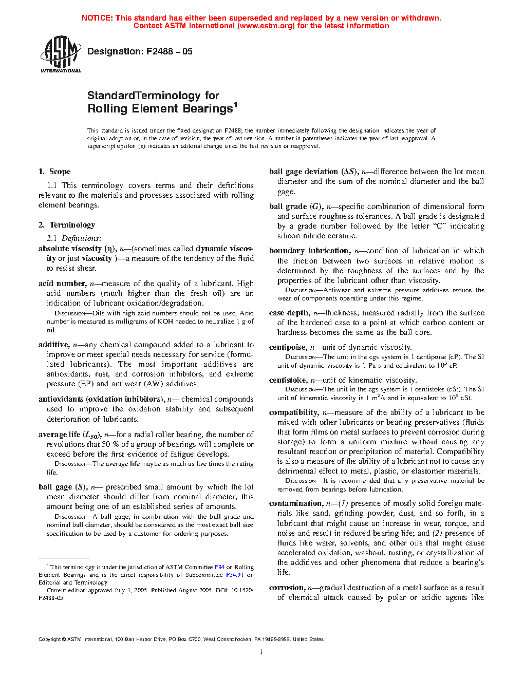 1.1 This terminology covers terms and their definitions relevant to the materials and processes associated with rolling element bearings.