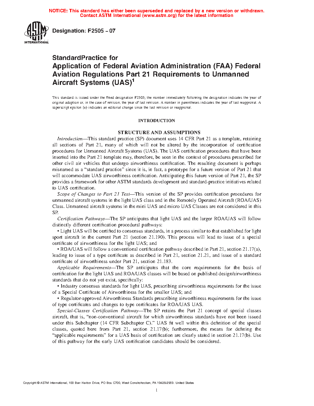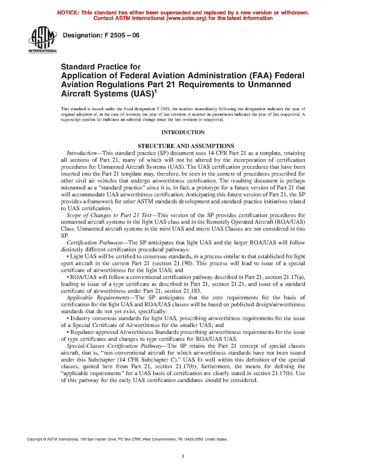 This practice is intended for guidance and instruction of the aircraft and unmanned aircraft systems industries when addressing the requirements of Part 21.