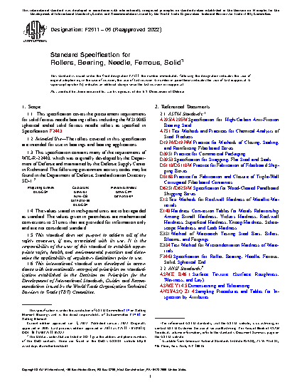 1.1 This specification covers the procurement requirements for solid ferrous needle bearing rollers including the MS19065 spherical ended solid ferrous needle rollers as specified in Specification F2443.