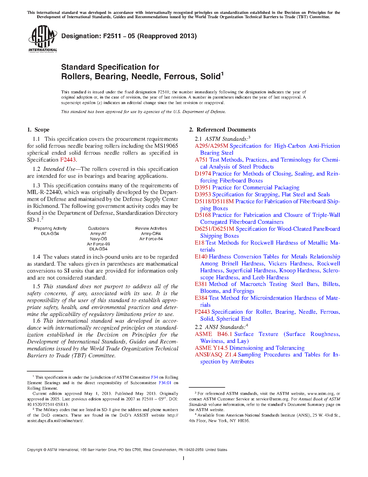 1.2 Intended UseThe rollers covered in this specification are intended for use in bearings and bearing applications.