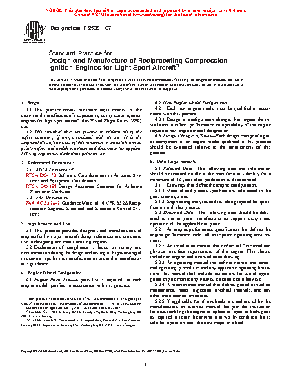 This practice provides designers and manufacturers of engines for light sport aircraft design references and criteria to use in designing and manufacturing engines.