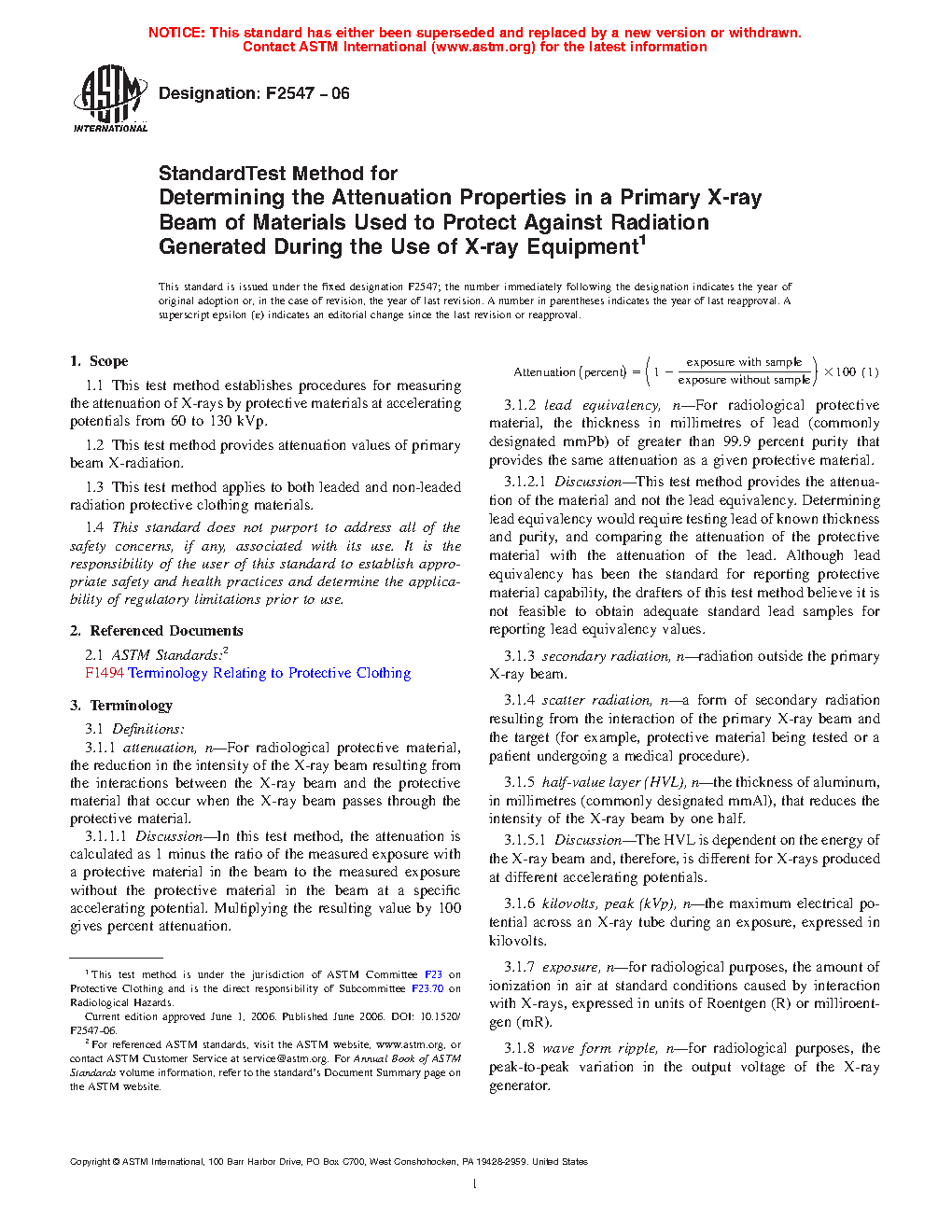 1.2 This test method provides attenuation values of primary beam X-radiation.