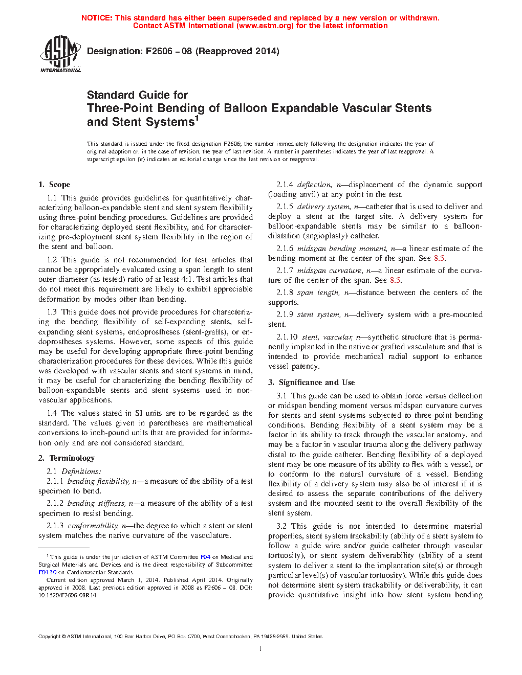 1.3 This guide does not provide procedures for characterizing the bending flexibility of self-expanding stents, self-expanding stent systems, endoprostheses (stent-grafts), or endoprostheses systems. However, some aspects of this guide may be useful for developing appropriate three-point bending characterization procedures for these devices. While this guide was developed with vascular stents and stent systems in mind, it may be useful for characterizing the bending flexibility of balloon-expandable stents and stent systems used in non-vascular applications.