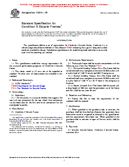 1.1 This specification establishes testing requirements for the structural performance properties of Condition 3 bicycle frames.