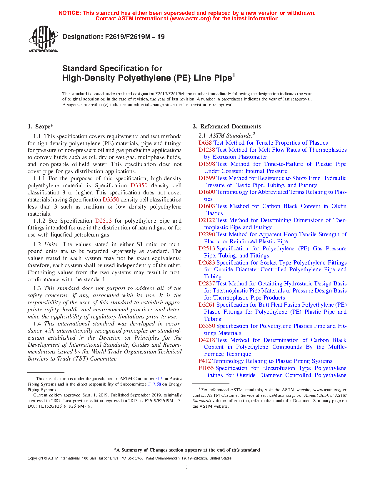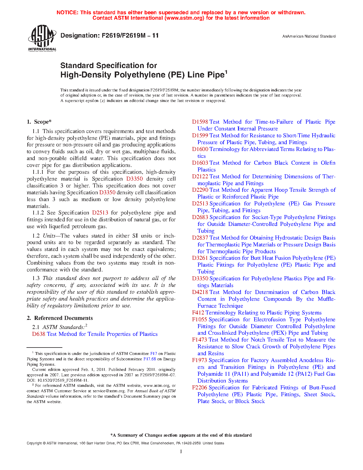 1.1.2 See Specification D2513 for polyethylene pipe and fittings intended for use in the distribution of natural gas, or for use with liquefied petroleum gas.