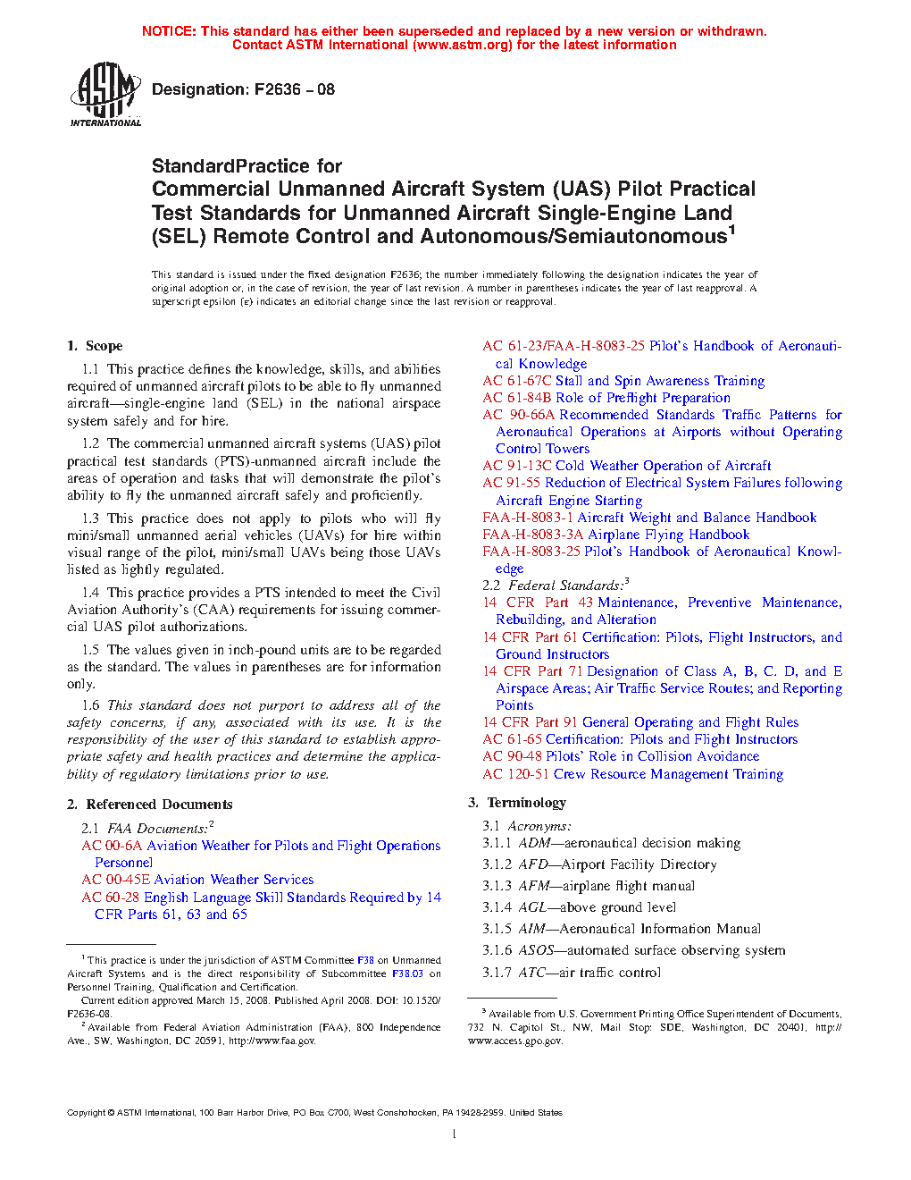 1.2 The commercial unmanned aircraft systems (UAS) pilot practical test standards (PTS)-unmanned aircraft include the areas of operation and tasks that will demonstrate the pilot's ability to fly the unmanned aircraft safely and proficiently.