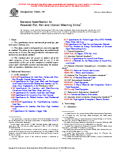1.1 This specification covers commercial powered pot, pan and utensil washing sinks.