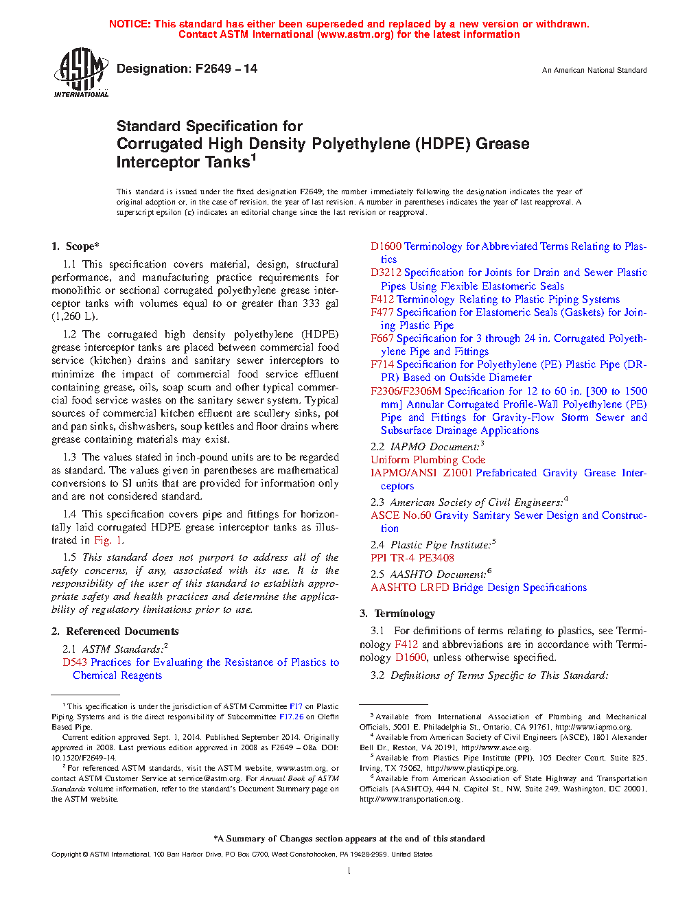 1.4 This specification covers pipe and fittings for horizontally laid corrugated HDPE grease interceptor tanks as illustrated in Fig. 1.