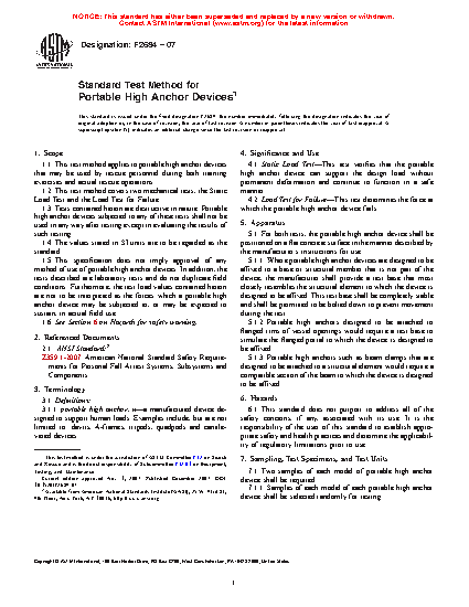 1.3 Tests contained herein are destructive in nature. Portable high anchor devices subjected to any of these tests shall not be used in any way after testing except in evaluating the results of such testing.