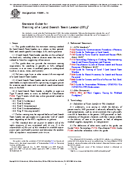 1.1 This guide establishes the minimum training standard for Land Search Team Leaders as it relates to their general, field, and search-specific knowledge, skills, and experience.