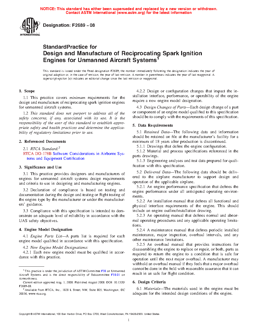 1.1 This practice covers minimum requirements for the design and manufacture of reciprocating spark ignition engines for unmanned aircraft systems.