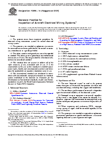 This practice is not intended to supersede or replace any government specification or specific manufacturer’s instruction regarding electrical system inspection and repair.