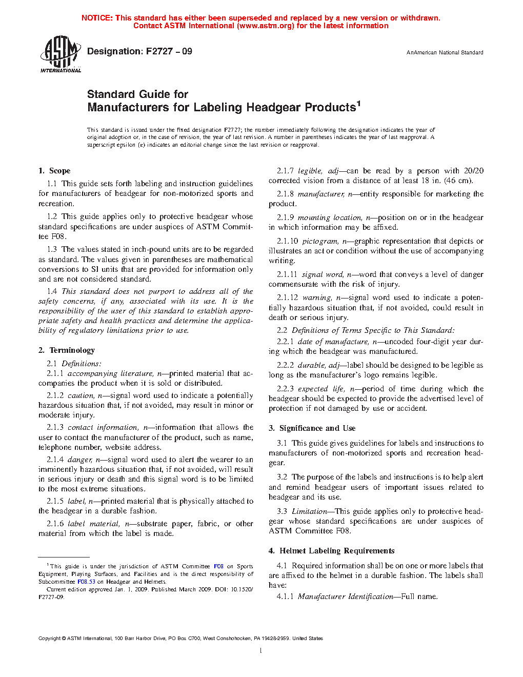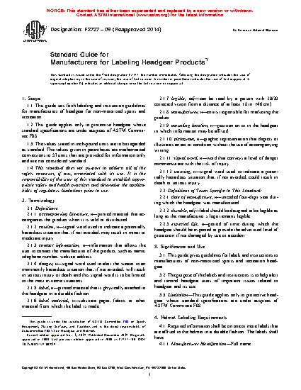 1.1 This guide sets forth labeling and instruction guidelines for manufacturers of headgear for non-motorized sports and recreation.