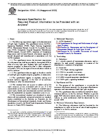 1.1.1 This specification covers the minimum requirements for information that shall be provided by the airplane OEM or seller of a new light sport airplane, light sport airplane kit, engines, propellers, or accessories (that is, radio, transponder, instruments, GPS, etc.) as a part of the initial sale or transfer to the first end-user.