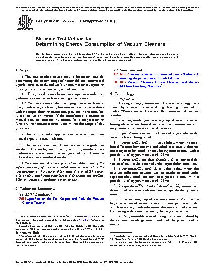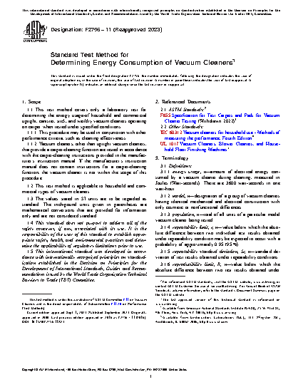 4.1 This test method provides an indication of the amount of energy usage of the vacuum cleaner while operating over a specified cleaning area at a specified stroke speed and total number of cleaning strokes.