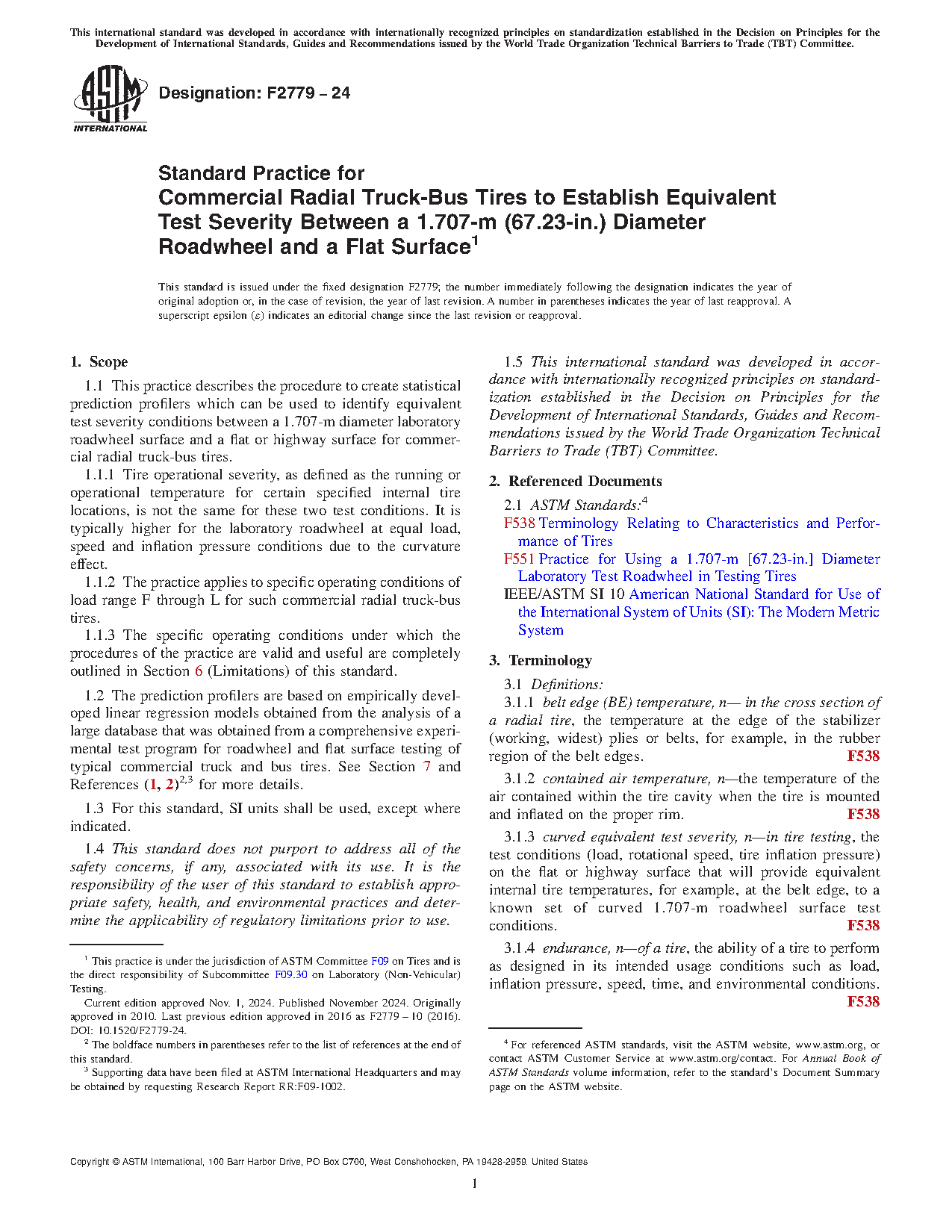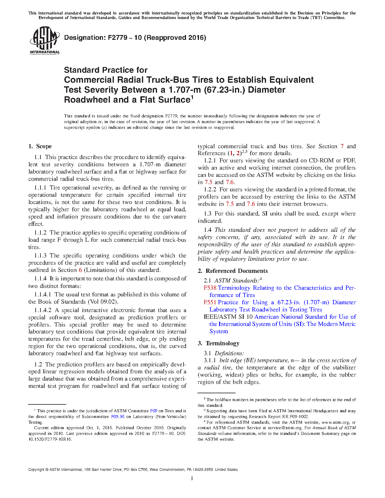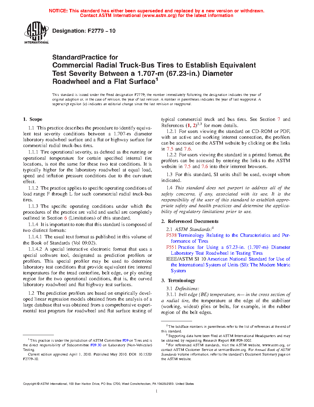 1.1 This practice describes the procedure to identify equivalent test severity conditions between a 1.707-m diameter laboratory roadwheel surface and a flat or highway surface for commercial radial truck-bus tires.