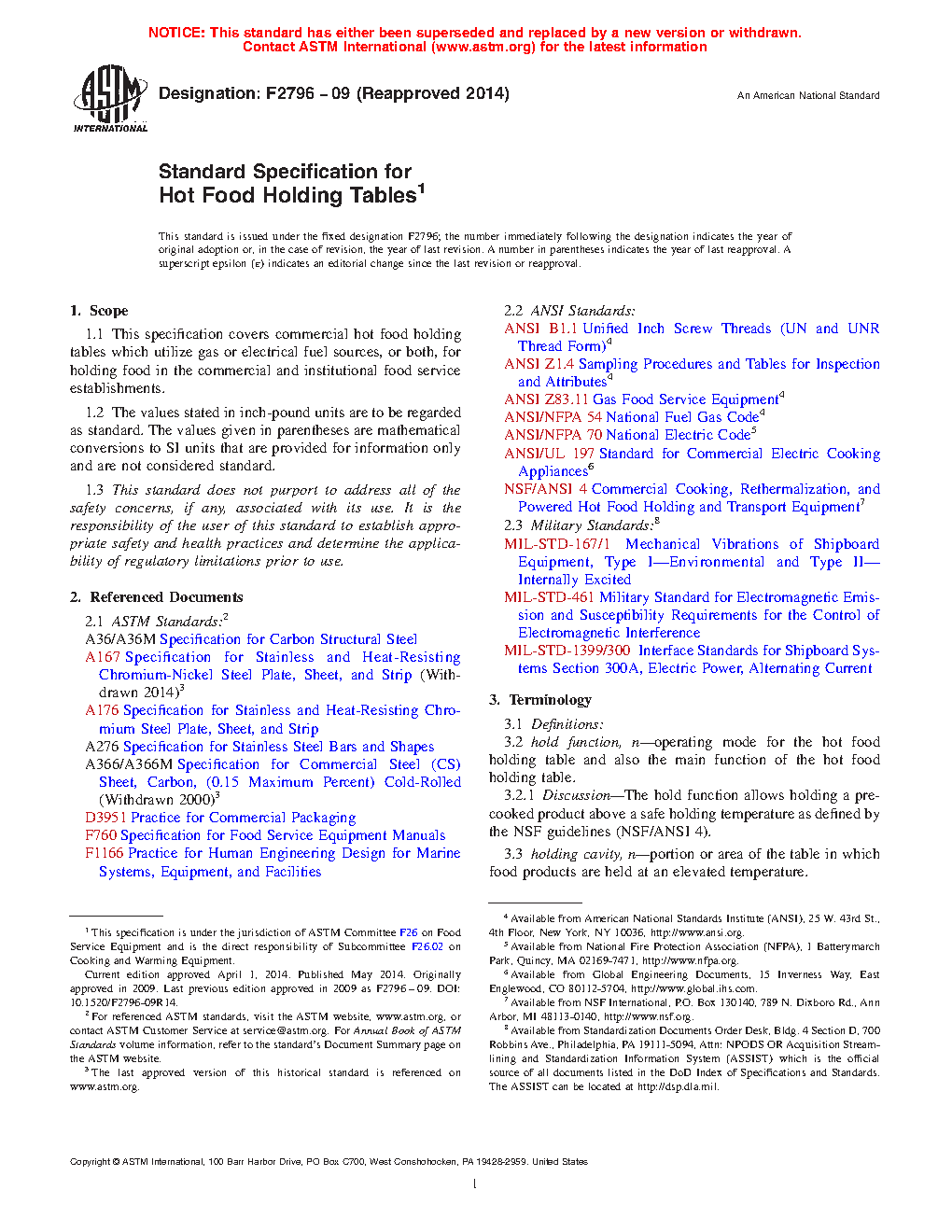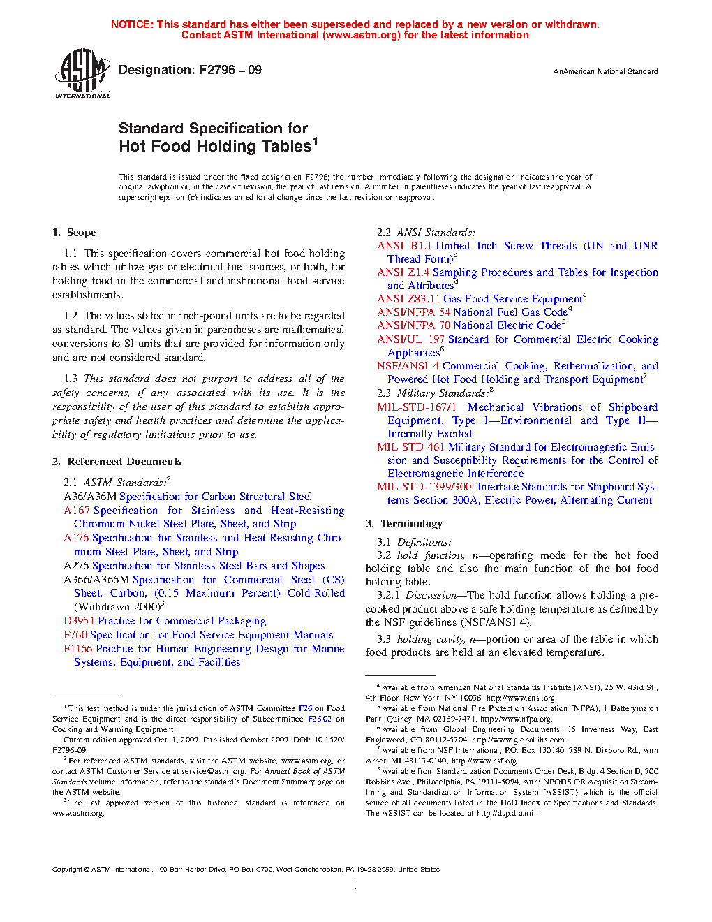1.1 This specification covers commercial hot food holding tables which utilize gas or electrical fuel sources, or both, for holding food in the commercial and institutional food service establishments.