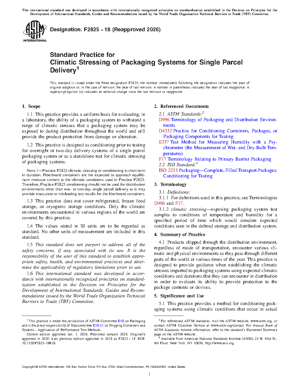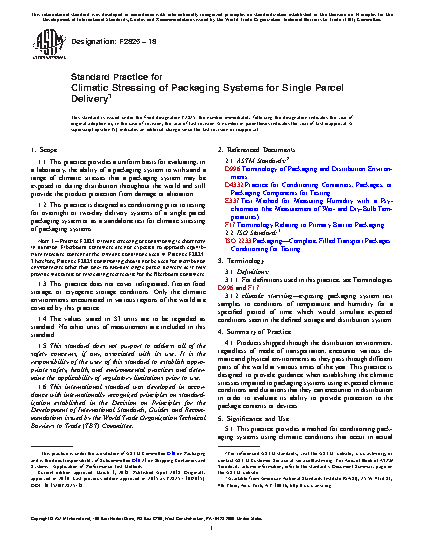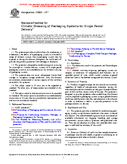 1.2 This practice is designed as conditioning prior to testing for overnight or two-day delivery systems of a single parcel packaging system or as a standalone test for climatic stressing of packaging systems.