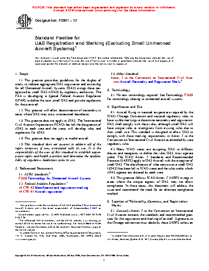 4.3 This practice follows ICAO Annex 7 SARPS except in areas where the unique aspects of UAS may not allow compliance. In these cases, this document will address the issue and recommend the need for an alternate compliance method.