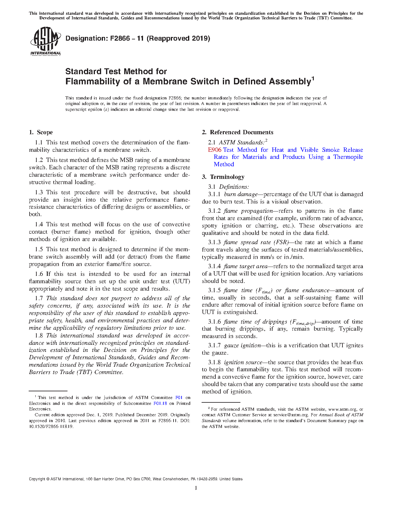 1.5 This test method is designed to determine if the membrane switch assembly will add (or detract) from the flame propagation from an exterior flame/fire source.