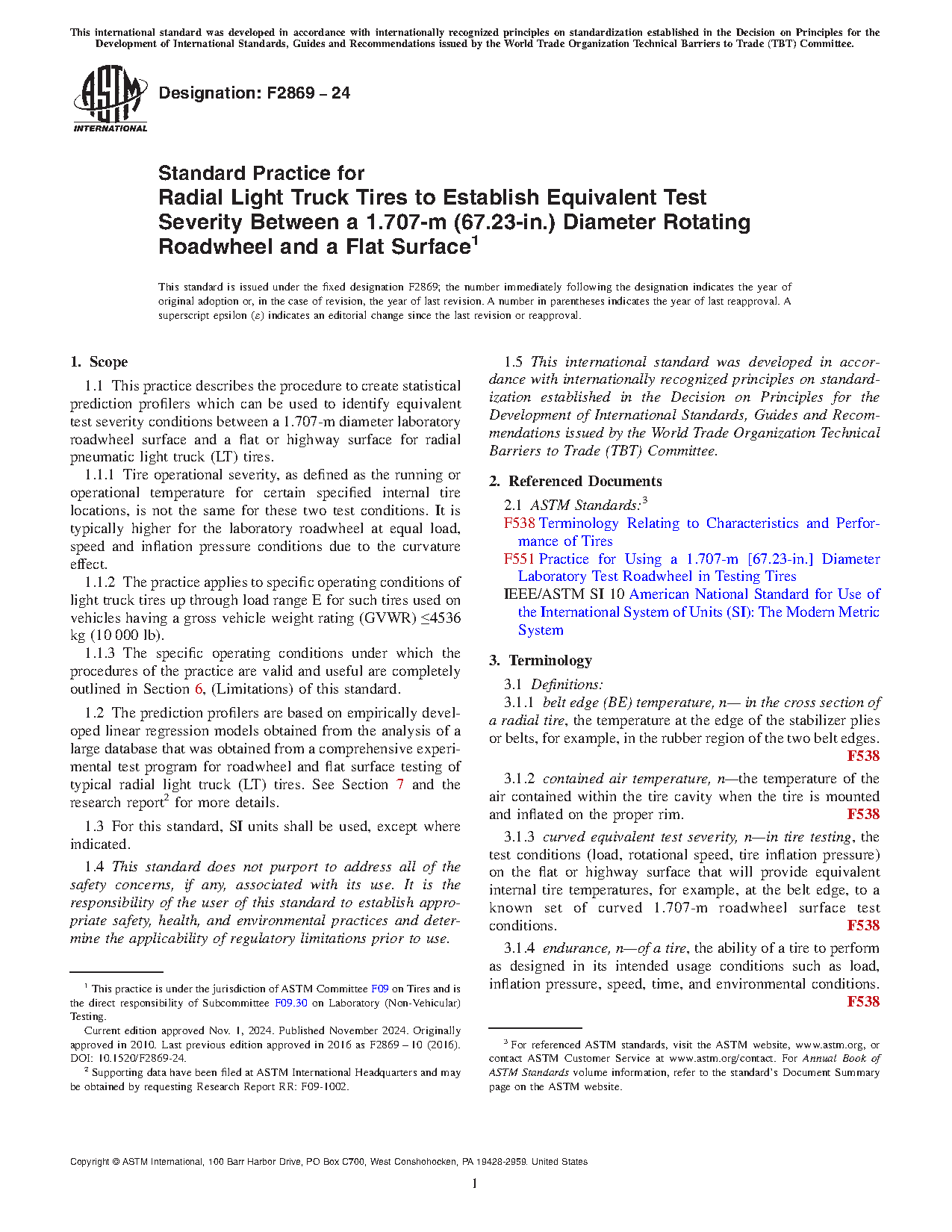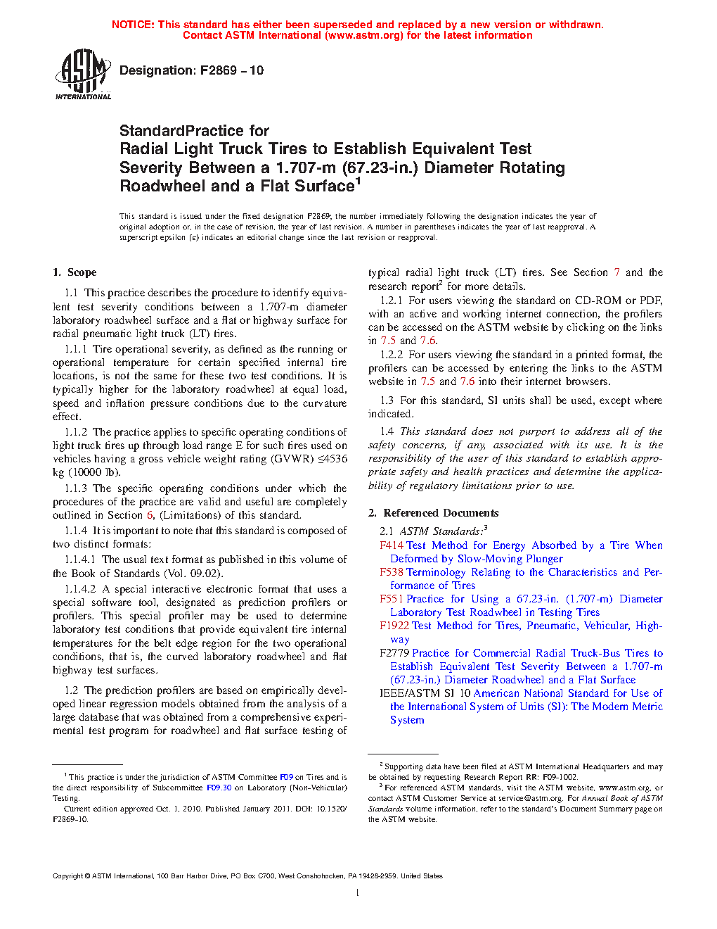 1.1 This practice describes the procedure to identify equivalent test severity conditions between a 1.707-m diameter laboratory roadwheel surface and a flat or highway surface for radial pneumatic light truck (LT) tires.