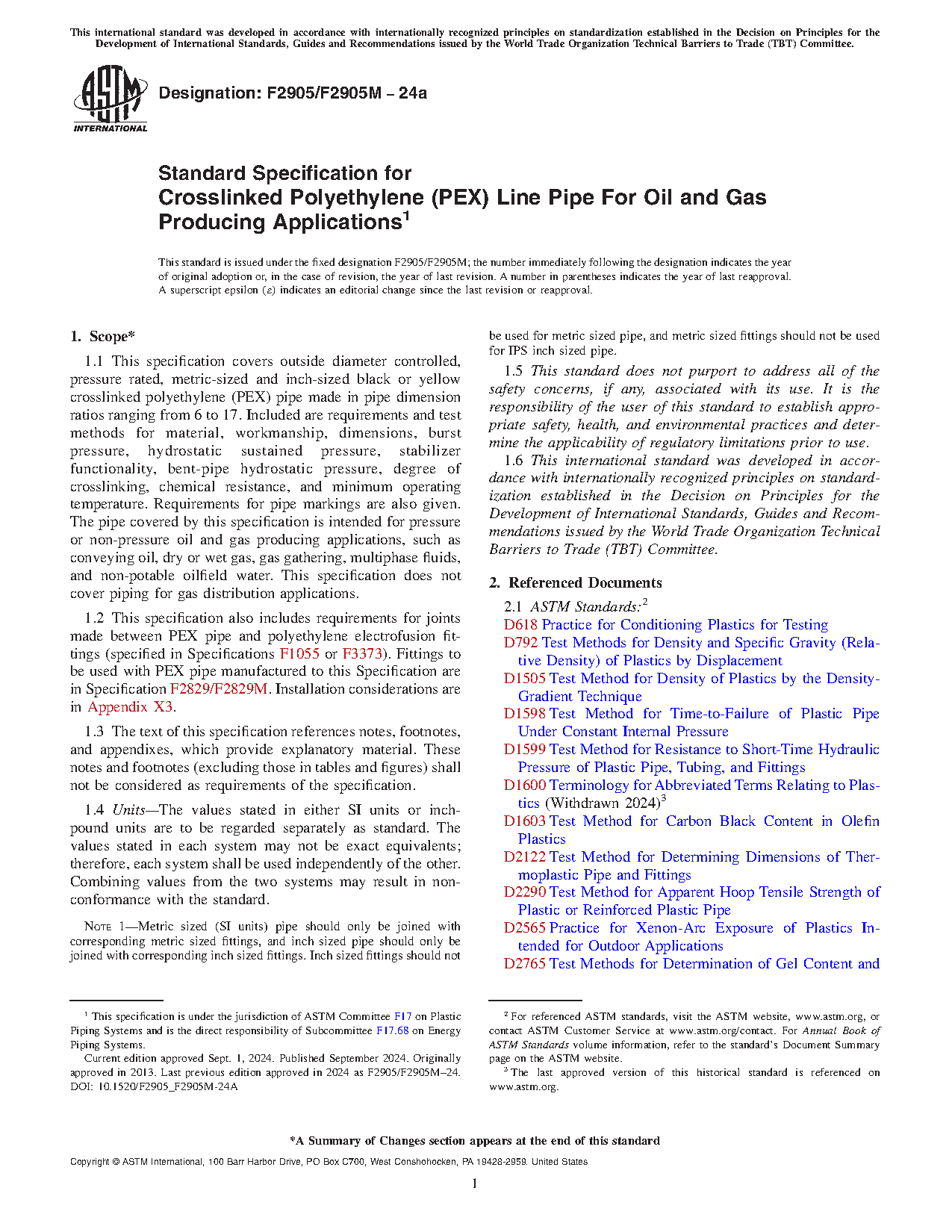 1.1.1Â PEX pipe produced in accordance with this specification is permitted to be dually specified in accordance with API 15PX, which has a similar usage scope and requirements.