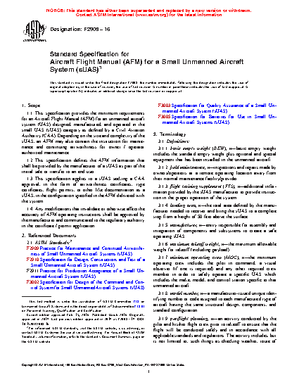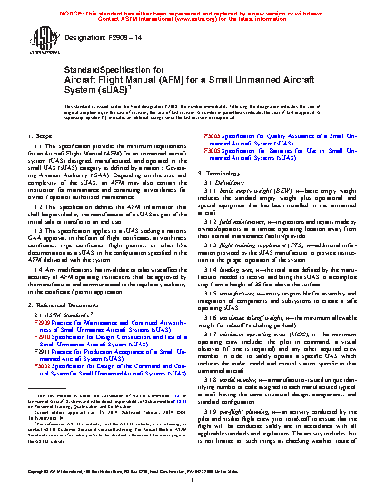 1.1 This specification provides the minimum requirements for an Unmanned Aircraft Flight Manual (UFM) for an unmanned aircraft system (UAS) designed, manufactured, and operated in the light UAS category as defined by a Civil Aviation Authority (CAA). Depending on the size and complexity of the UAS, an UFM may also contain the instruction for maintenance and continuing airworthiness for owner / operator authorized maintenance.