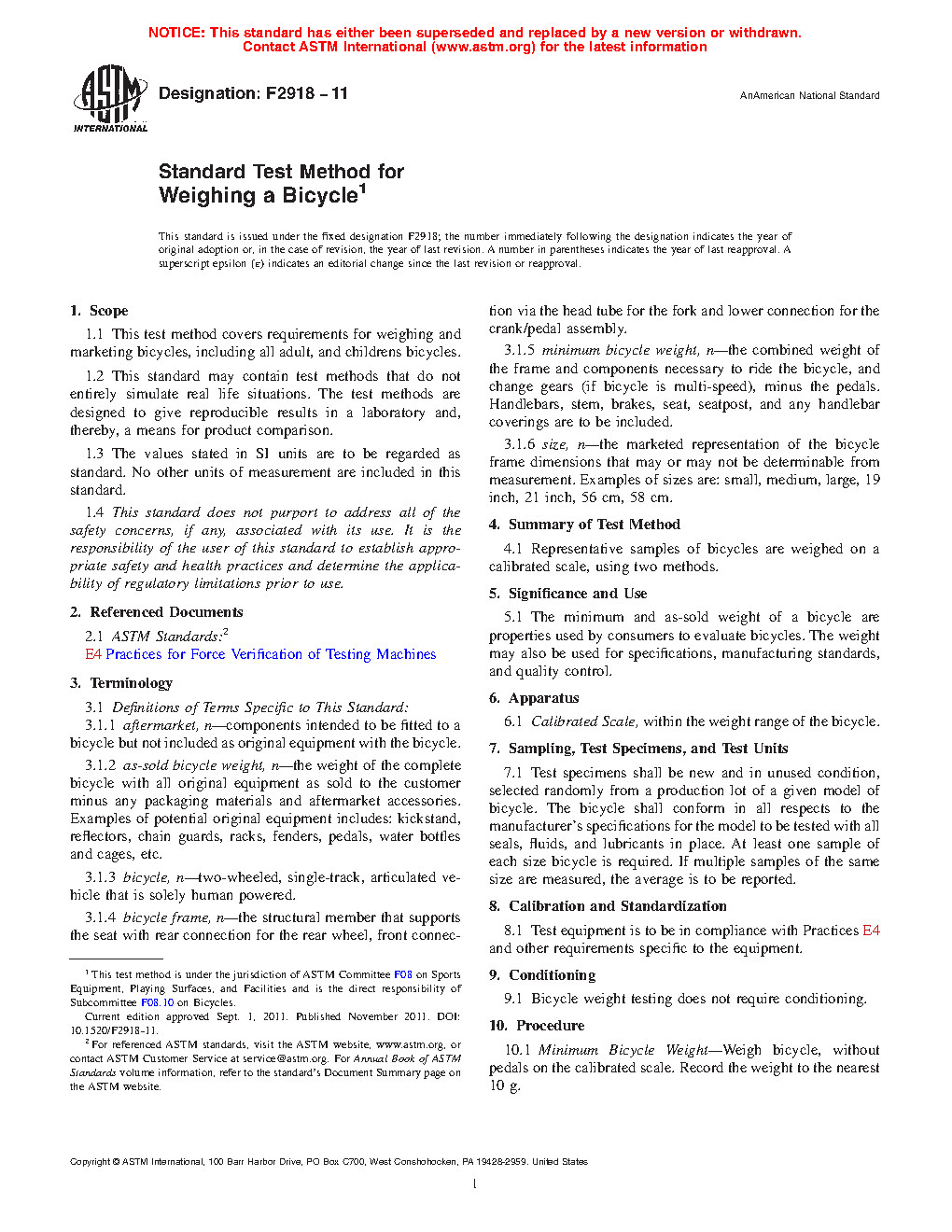 5.1 The minimum and as-sold weight of a bicycle are properties used by consumers to evaluate bicycles. The weight may also be used for specifications, manufacturing standards, and quality control.