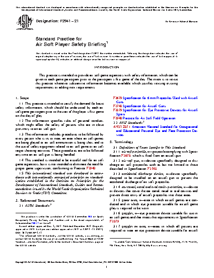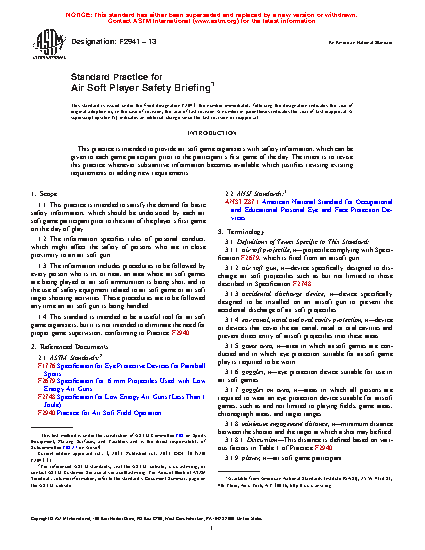 1.4 This standard is intended to be a useful tool for air soft game organizers, but it is not intended to eliminate the need for proper game supervision, conforming to Practice F2940.