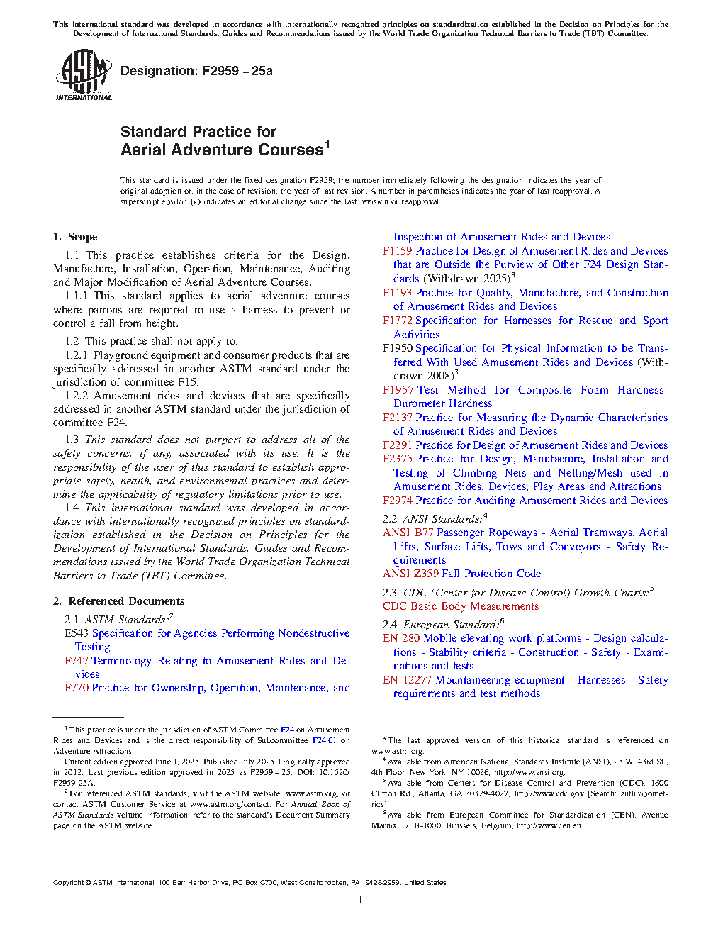 1.1 This practice establishes criteria for the Design, Manufacture, Installation, Operation, Maintenance, Auditing and Major Modification of Aerial Adventure Courses.